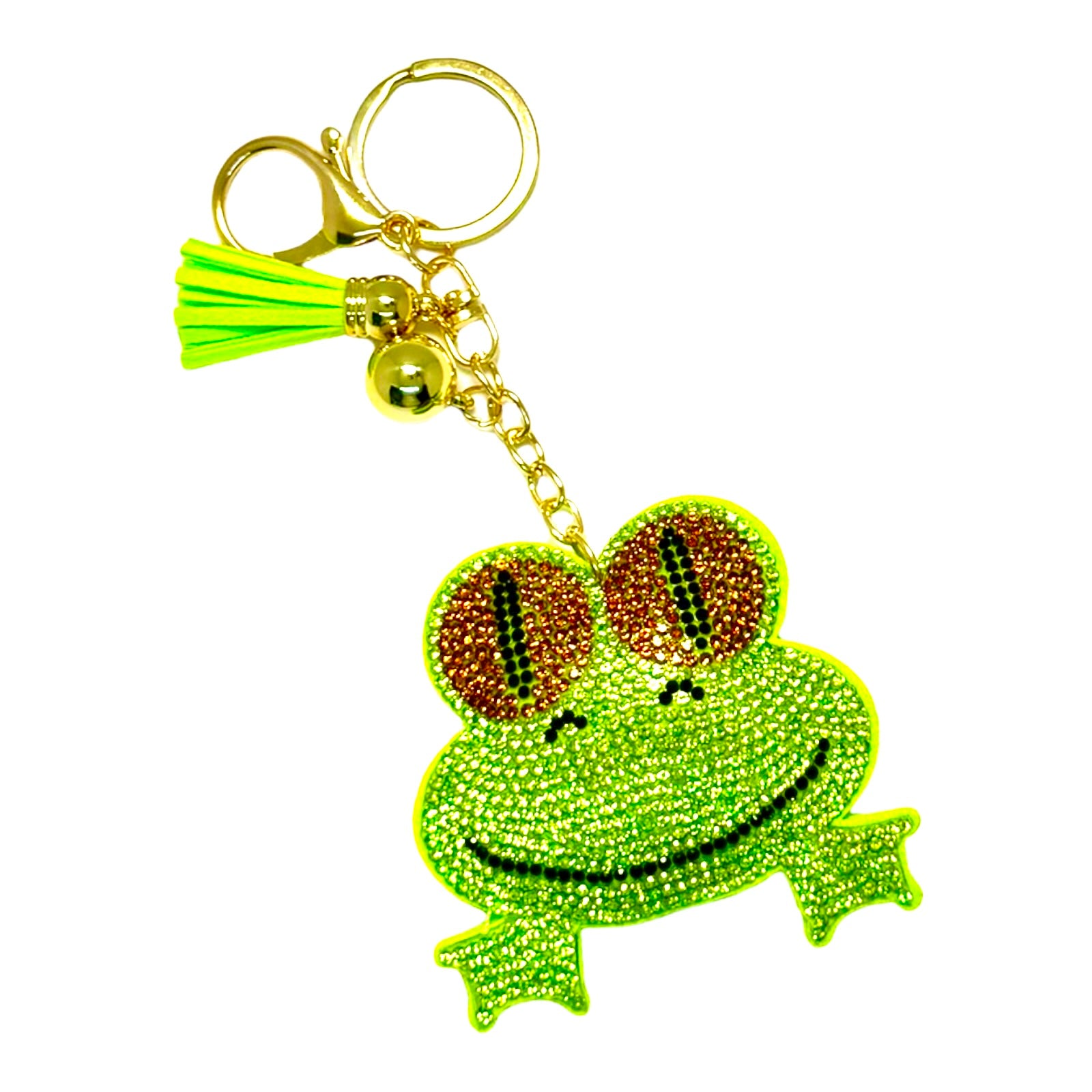 Bright Green Frog Rhinestone Puff Bling Keychain