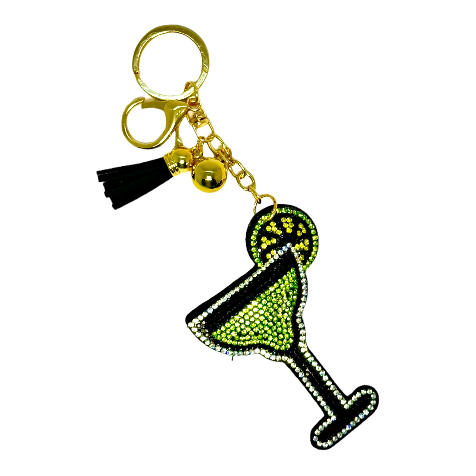 Bright Green Margarita Drink/Glass Rhinestone Puff Bling Keychain